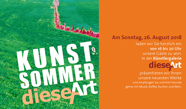 Am 26.8.18 ab 16 Uhr feiert die Künstlergruppe dieserART mit einem Sommerfest ihren 9. Geburtstag.